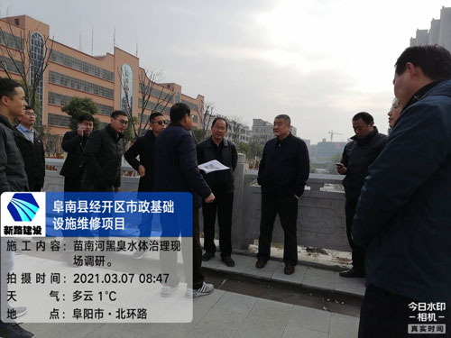 2021年3月7日上午,阜南县姜宁县长对我集团公司承建的苗南河黑臭水体治理项目进行了考察调研,城建局局长陈亮、环保局局长周卫东、经济开发区管委会规划局局长陈德军、重点工程服务中心等相关负责人,及集团公司运维事业部经理张仕龙陪同。