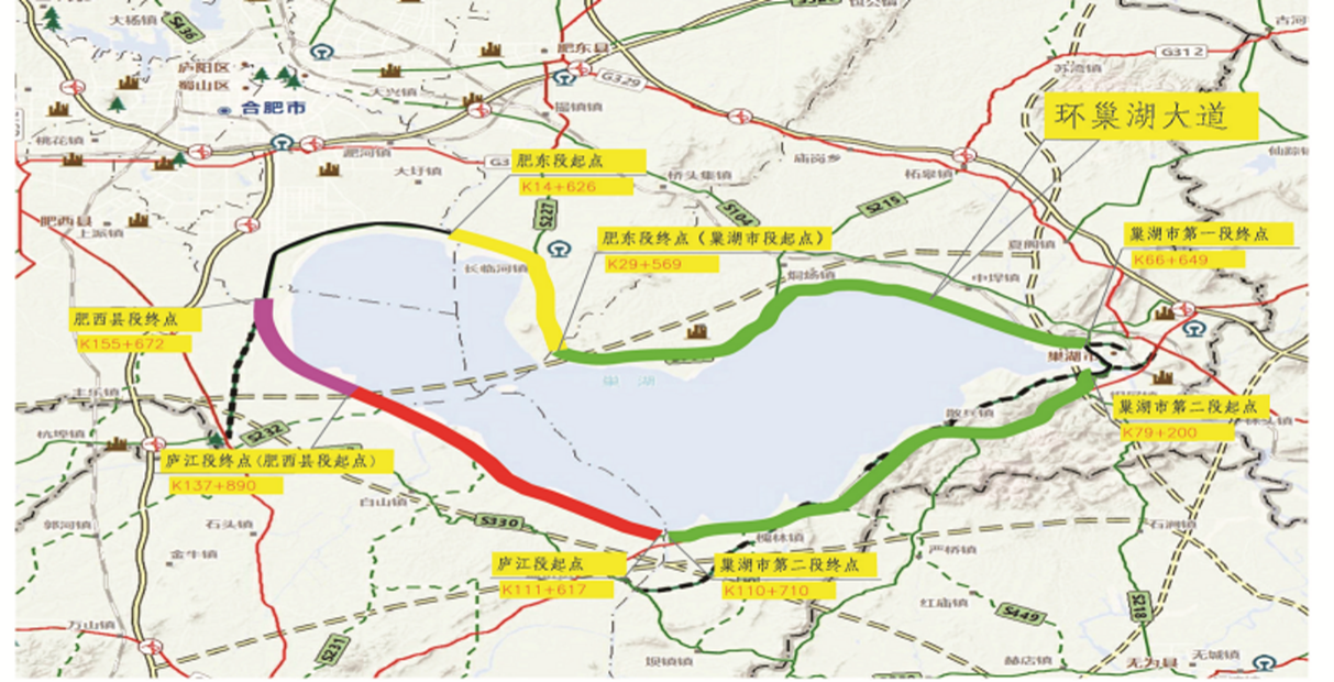 S601作为连接合肥市区与肥东县、巢湖市、庐江县、肥西县的一条交通走廊带的重要载体,路线环巢湖一周,伴随环巢湖旅游开发的建设,现已成为一条重要的旅游观光道路,是合肥市民短途出游的重要线路。本次世行贷款安徽公路养护创新示范项目子项目B合肥段包含S601环巢湖公路包括肥东县﹑巢湖市、庐江县及肥西县段,实际实施里程为125.34公里。OPRC合同本意是“基于产出和绩效的道路养护合同”,是一种创新的工程承包、公路维护和资产管理模式。