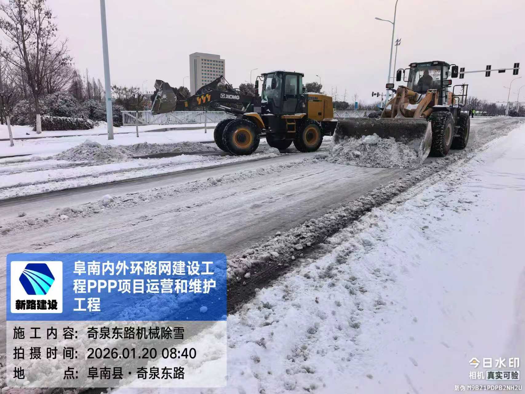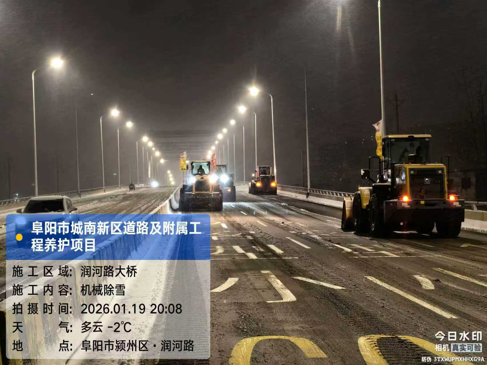 1月19日,阜阳市迎来低温雨雪寒潮天气。伟德国际1946源于英国集团闻“雪”而动、迅速响应,第一时间组织运维分公司及各在建项目部全面开展铲冰除雪作业,全力保障辖区道路安全畅通。