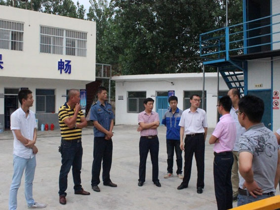 安徽环宇公司滁新、济广高速阜阳段桥梁养护工程项目负责人重点向参观人员介绍了安全管理、制度上墙、标牌摆放、机具摆放、日常管理等方面的标准化建设。王科长要求大家认真倾听,仔细观摩学习,主动询问取经并积极做好记录工作。