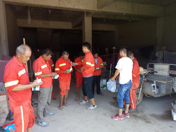 近期酷暑来袭,40℃的高温不断,我项目部积极响应安鑫公司领导对我项目部慰问时的号召,采购了人丹、藿香正气丸、清凉油等防暑用品以及绿豆、西瓜等清凉食品,第一时间组织开展了项目部内部施工班组防暑降温送清凉活动。