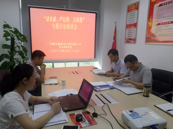 7月27日下午,安鑫公司党支部在党员活动室开展了“讲忠诚、严纪律、立政德”专题学习会,会议由党支部书记崔传志主持。