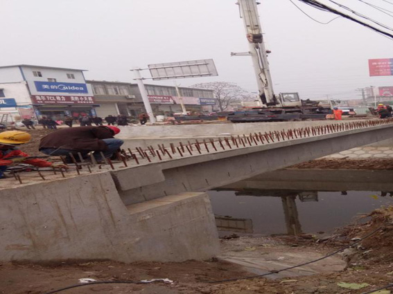 我项目部提前与当地政府沟通,在施工区域设置临时围挡与提醒标志,并派遣人员指挥交通防止拥堵。吊运前向起重吊装操作人员及现场作业人员进行了安全技术交底,试吊后在专人指挥下完成了第一片梁的吊运安装。经过5个小时的密切配合,胡集闸桥10片预制梁板的吊运工作顺利完成,得到了当地政府和村民的称赞。我项目部承诺将加快施工进度,按时完成施工任务,方便人民群众的出行。