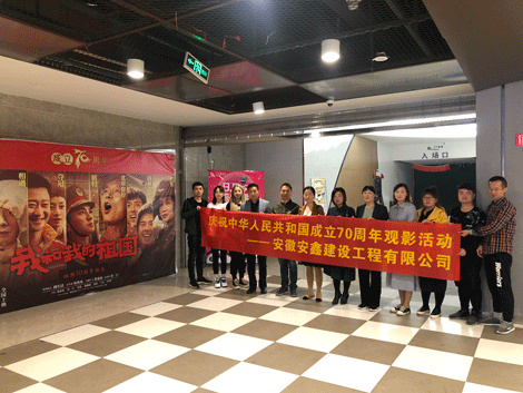 为庆祝中华人民共和国成立70周年,落实“不忘初心、牢记使命”主题教育活动,培养全体员工的使命感和历史责任感,进一步激发和弘扬爱国主义精神。10月8日下午,安徽安鑫建设工程有限公司党支部组织全体员工观看爱国影片《我和我的祖国》。