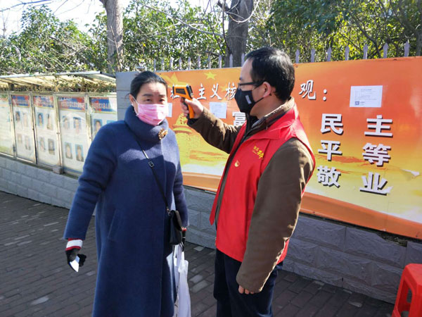2月18日安鑫公司党支部书记崔传志带领志愿者开展疫情防控工作