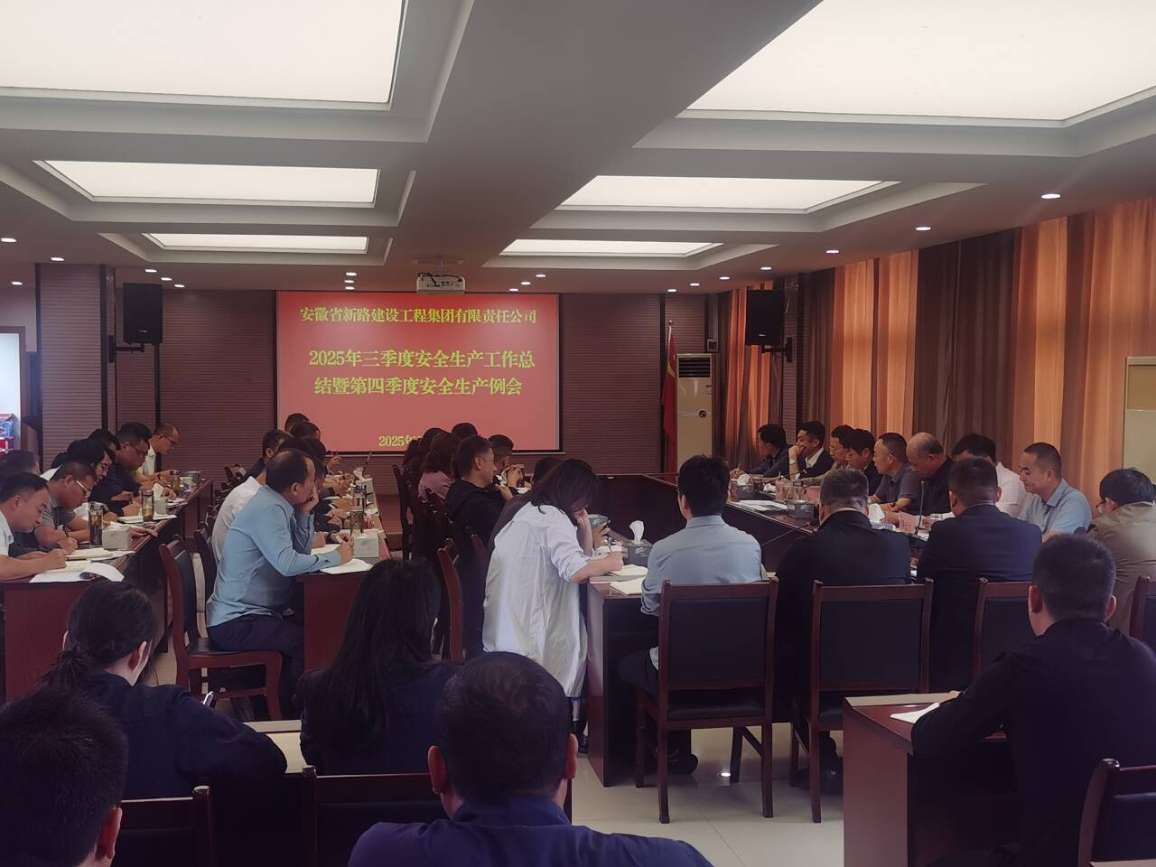 会上,传达学习了国务院安委会办公室中秋国庆及四季度安全生产工作要求等相关文件,通报了三季度安全生产督查情况,全面总结工作成果,深入剖析存在问题,明确四季度工作重点。强调假期要强化安全管控,聚焦双重预防体系建设,加强秋冬季施工管理,严格执行领导带班和应急值守纪律,科学应对恶劣天气与突发险情。
