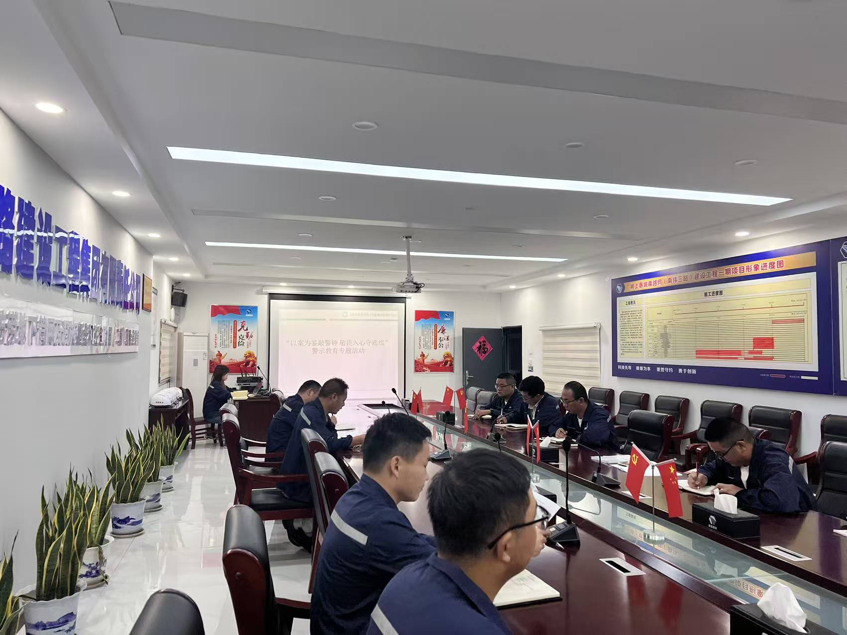 2025年9月29日下午18:30,颍上项目部在会议室开展党风廉政警示教育活动。