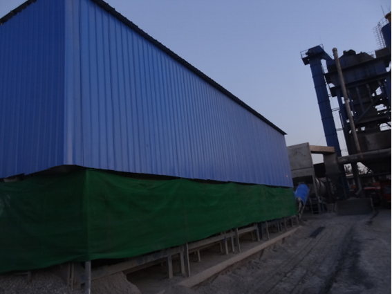 由于新型环保沥青拌和设备的推广,原有传统沥青拌和设备中存在的环保缺陷被逐步放大。为适应新的竞争法则,程集拌和站对原有拌和设备中存在的一些粉尘污染进行了一系列的整改,主要包括钢结构大棚覆盖、悬挂防尘网、冷料供料斗三面密闭、上料皮带加防尘罩、搅拌层加装彩钢瓦等,并将收集到的粉尘及时排放到密闭的粉料运输车内,安排专人定期对拌和站场地清扫、洒水。此次整改工作于6月24日完成。