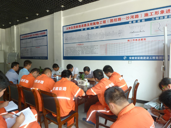 2014年9月4日上午,在太和国泰路道路及附属工程项目部会议室,公司组织安全部相关人员对国泰路道路及附属工程项目部全体管理人员进行安全技术交底。