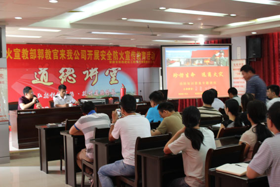 2015年8月26日下午,集团公司邀请安徽省合肥爱民防火宣教部教官在公司五楼会议室开展“共创平安、共享和谐”为主题的消防知识普及专题讲座活动。公司各直管项目部、各(子)分公司代表以及公司各部门全体人员积极参加了此次宣传教育活动。教官利用真实典型火灾案例、燃气爆炸事故等案例详细讲授了消防安全、防火灭火和逃生自救相关知识。通过此次宣传教育活动,参训人员增强了“防范胜于救灾,责任重于泰山”的消防安全意识,提高了防火救灾和自救逃生能力,为做好集团公司消防安全和安全生产管理工作夯实了基础。