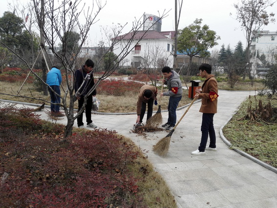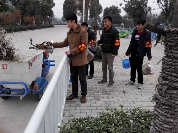 路友志愿者清扫路面