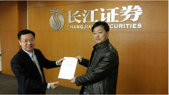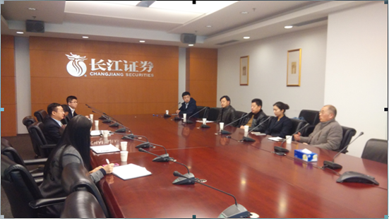 受长江证券股份有限公司邀请,我单位总会计师梁总一行在长江证券阜阳营业部总经理张总陪同下,于2015年12月16日上午前往位于武汉的长江证券总部。长江证券固定收益部总经理柳杨等人就我单位2015年公司债发行事宜与梁总进行了面谈。会议双方在谈话中都表达了对我单位此次发行公司债的重视和期待,同时就下一步如何实现我单位融资渠道多元化发表了自己的观点和认识。