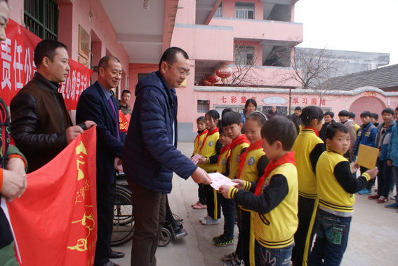 3月18日上午集团公司董事长给希望小学贫困学生送去助学金