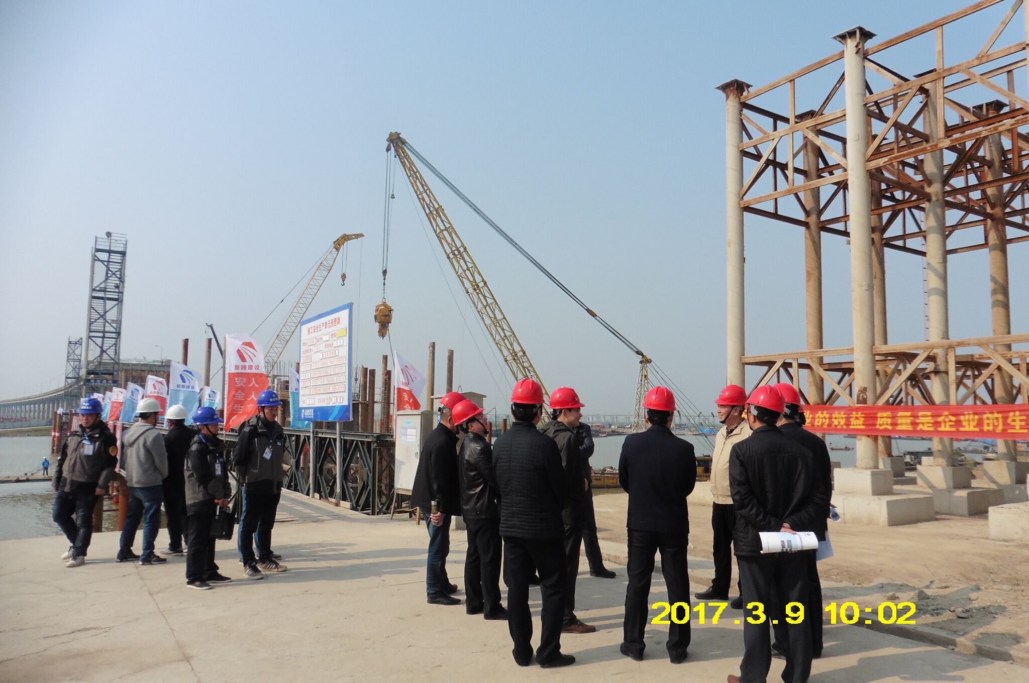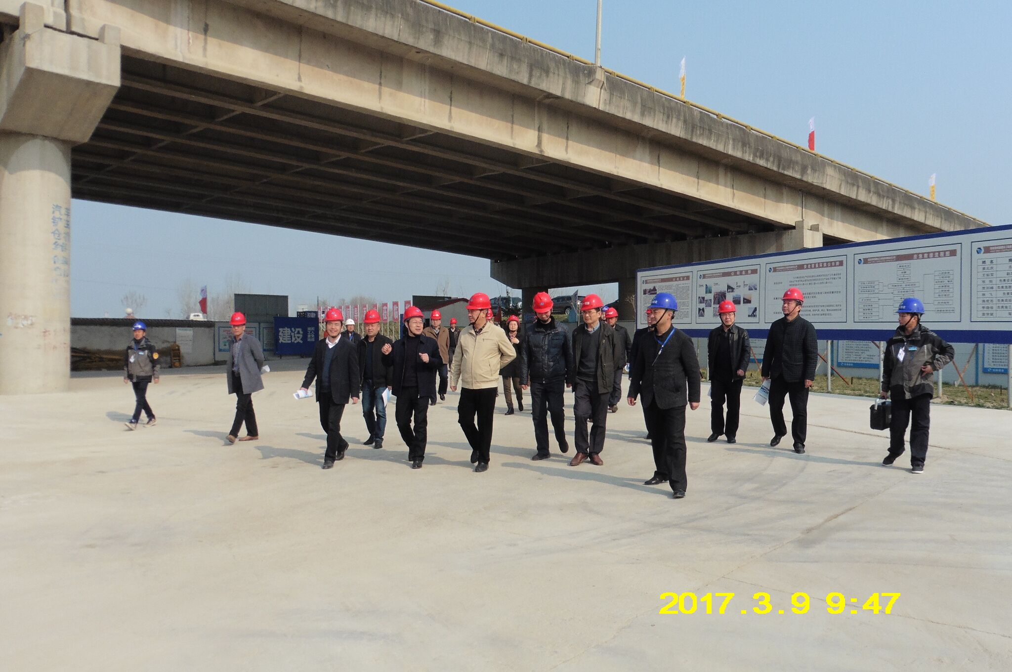 2017年3月9日,安徽省交通厅副厅长程跃辉一行在市公路局局长李福忠、项目办主任王忠民、集团公司总经理韩恒忠的陪同下莅临G105线南照淮河公路大桥维修改造工程01标项目部检查指导工作。