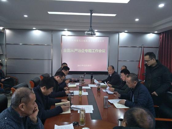 2017年12月25日上午,伟德国际1946源于英国建设工程集团在公司三楼会议室召开全面从严治企专题工作会议,集团公司领导班子、各部室、子公司及项目部负责人参加了此次会议,集团公司副总经理郝智明主持会议。