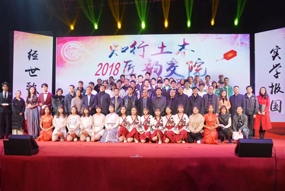 2018年11月22日晚,安徽交通职业技术学院土木工程系在风雨操场体育馆举行以“知行土木,匠韵交院”为主题的2018迎新生文艺晚会。集团公司副总经理崔勇、人力资源部部长魏静同志应邀出席,与学院纪委书记陈明、副院长王丰胜及处系领导、土木工程系全体师生共同见证了这场充满青春活力和昂扬斗志的迎新晚会。