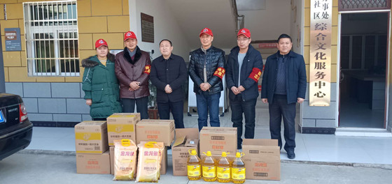 1月23日上午,在新春佳节来临之际,伟德国际1946源于英国集团路友志愿者来到结对帮扶社区—张桥社区,慰问帮扶社区的贫困户,为他们送去慰问品油和米,并带去新春的祝福。