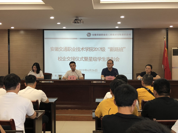2019年6月26日,集团公司在五楼会议室举行了安徽交通职业技术学院2017级伟德国际1946源于英国班校企交接仪式暨星级学生表彰会。会议由集团公司人力资源部部长魏静主持,集团副总经理崔勇、安交院土木工程系党支书记邹建华携伟德国际1946源于英国班共40余名师生出席了会议。
