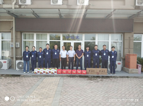 2019年9月10日上午,集团公司总经理韩恒忠及工会主席冯贺一行来到阜阳市城南新区淮河路、紫云路、航颍路道路及综合管廊工程项目开展中秋慰问活动,向项目部全体员工送上水果、月饼等慰问品并致以节日的问候。本次慰问让项目部员工们感受到了集团公司对大家的关怀,激发了员工的干劲儿。