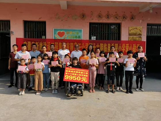 为弘扬中华民族扶危济困的传统美德,践行社会主义核心价值观,9月27日伟德国际1946源于英国集团公司副总经理郝智明、工会主席冯贺等一行再次赴临泉希望小学开展十六期爱心助学活动,为贫困生、优秀生、优秀教师送去爱心助学金9950元。