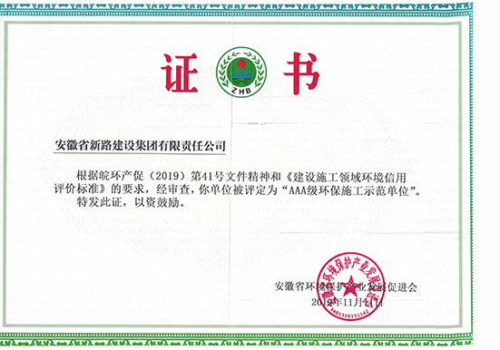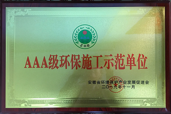近日,经安徽省环境保护产业发展促进会对省内各家单位的环保信用评估,集团公司再次荣获“AAA级环保施工示范单位”称号。
