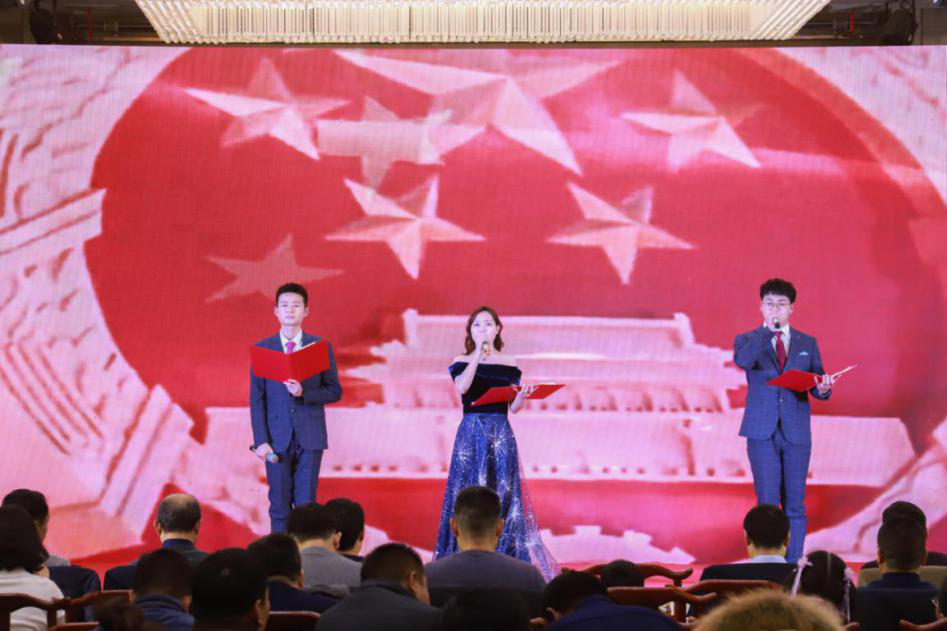 在联欢会上,来自各单位、各项目的“伟德国际1946源于英国人”在舞台上一展风采,临泉县路网项目部的小品《工地探亲》、临泉县G345项目部的歌曲《我和我的祖国》、正鑫检测公司的魔术表演《解脱》、阜合产业园项目部的小合唱《时代号子》、阜南PPP项目部的朗诵《不忘初心,伟德国际1946源于英国芳华》、茂诚路桥公司代表队的歌曲串烧《国家+你笑起来真好看》等演出节目在年会盛典中一一精彩呈现。