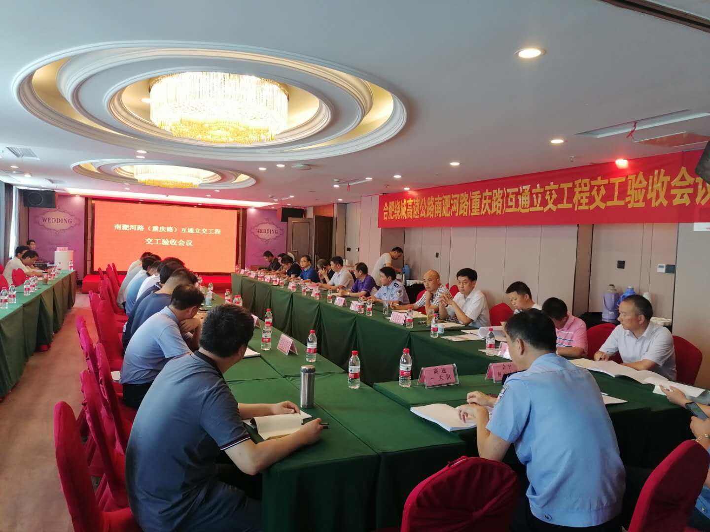 2020年7月31日,在建设单位的组织下合肥绕城高速南淝河路(重庆路)互通立交工程顺利通过交工验收,参与验收的单位有:市公路局,第三方检测单位,监理单位,设计院,包河区住建局,合肥市高速公路一大队,交警大队,市交投公司,建设单位,市交通质检站。