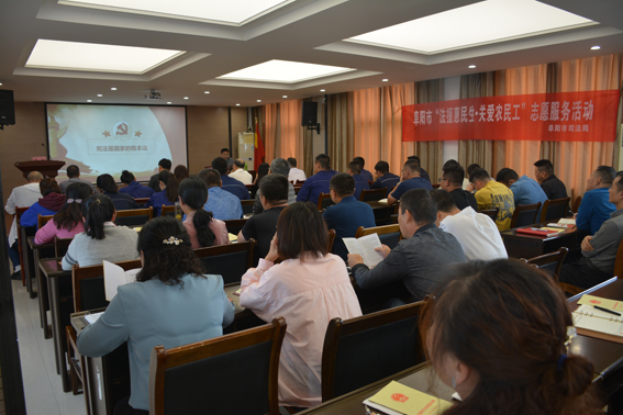 宣讲期间,市司法局、市总工会、市法宣办向党员干部赠送了《中华人民共和国宪法》《阜阳市民法典口袋书》《安徽省法律援助条例》《农民工的权利保护》等法律法规读本。