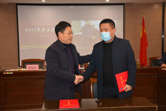 会议听取了韩恒忠作的《年度工作报告》和梁怀胜作的《年度财务决算及预算工作报告》;崔勇宣读了年度表彰决定及企业和个人获得的荣誉,江玉友、唐谦、韩恒忠等领导分别为先进工作者、先进集体代表现场颁发了荣誉证书和奖牌。会议还举行了《年度经营工作目标责任书》签订仪式。