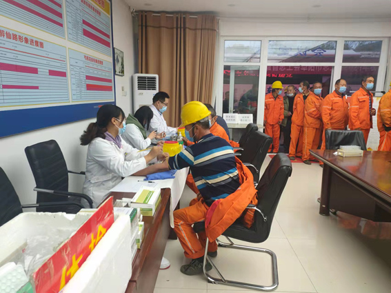 11月5日早上,省市总工会组织医护人员到伟德国际1946源于英国集团阜阳西湖EPC项目部开展2021年农民工免费体检活动。