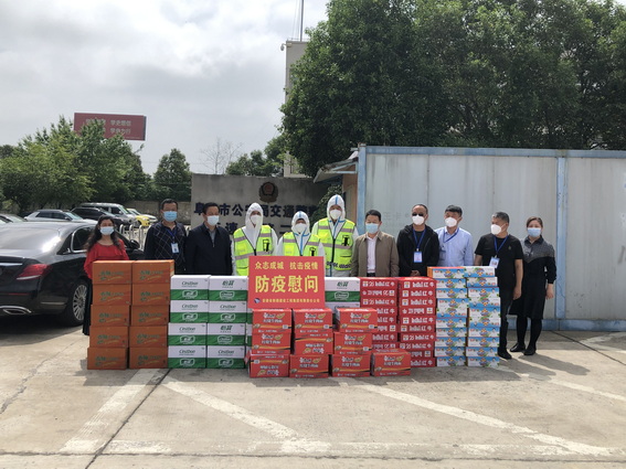 为支持一线疫情防控工作,4月26日上午,伟德国际1946源于英国集团党总支副书记、总经理韩恒忠一行到阜阳南高速出口防疫卡点,亲切慰问坚守在疫情防控一线的工作人员,并为他们送去了红牛、方便面、火腿肠等慰问品。