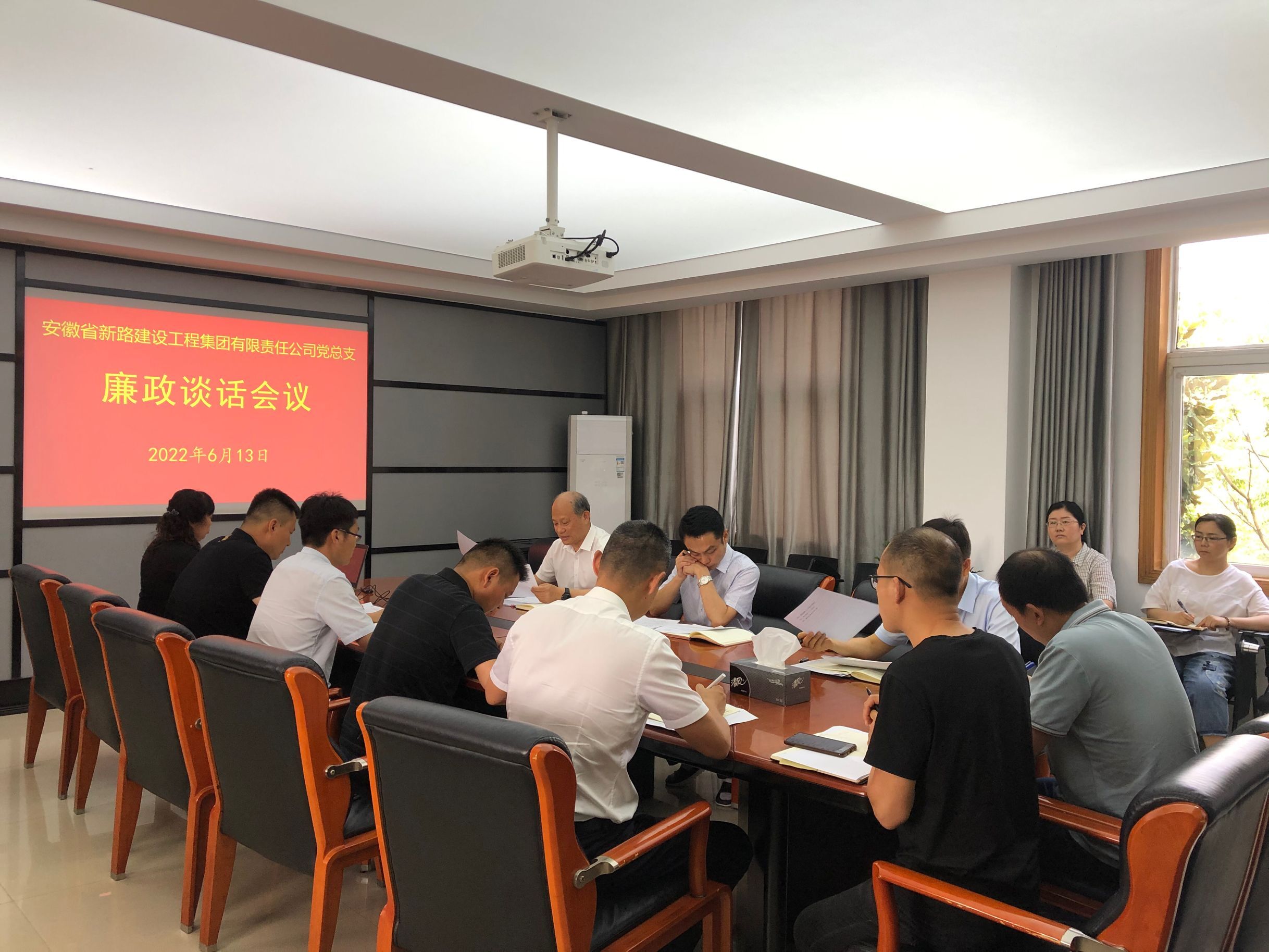 2022年6月13日,伟德国际1946源于英国集团党总支对新任职总经理助理、部室负责人及临泉县2022年较大自然村道路建设项目、吕寨镇农副产品交易物流中心等10个新开工项目管理层进行了廉政谈话。