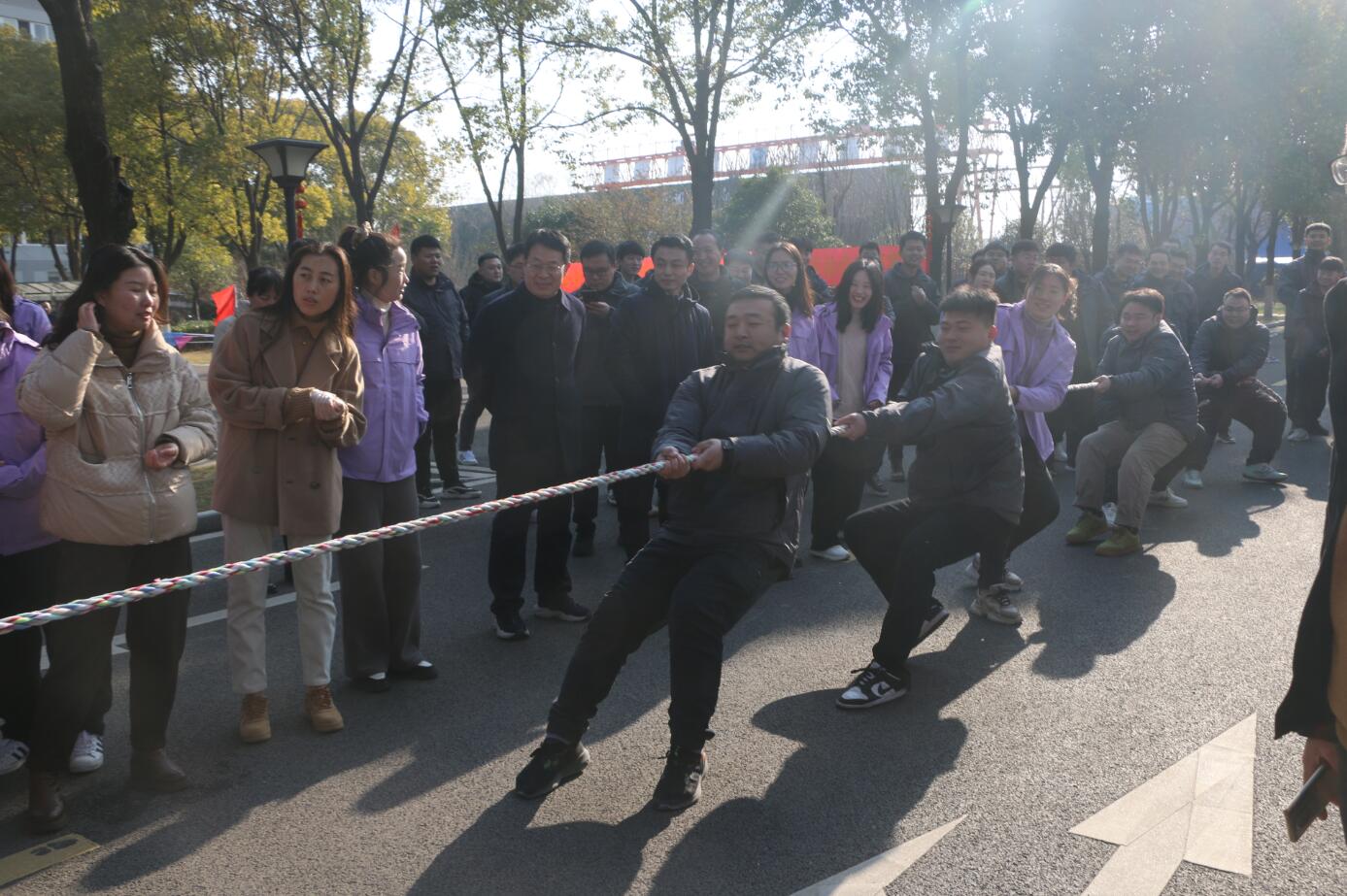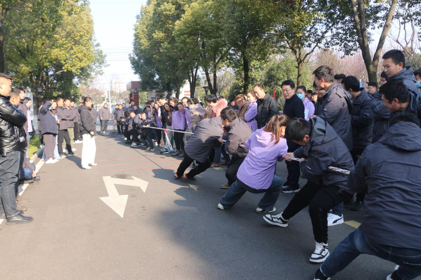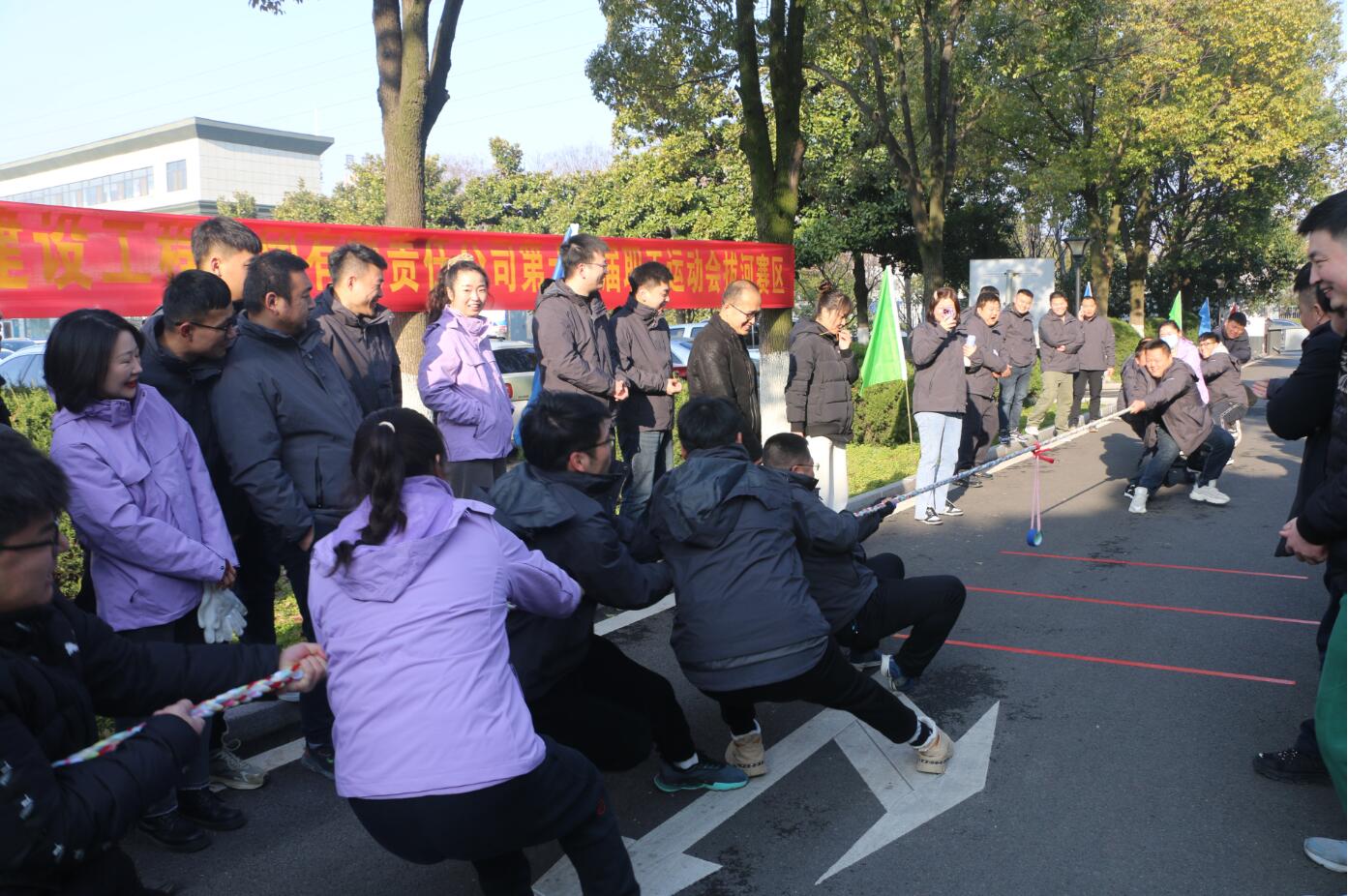 拔河赛区,各参赛队伍激情饱满,全神贯注,全力以赴。现场职工纷纷为运动员加油助威,拔河口号震耳欲聋,场面热烈欢腾。