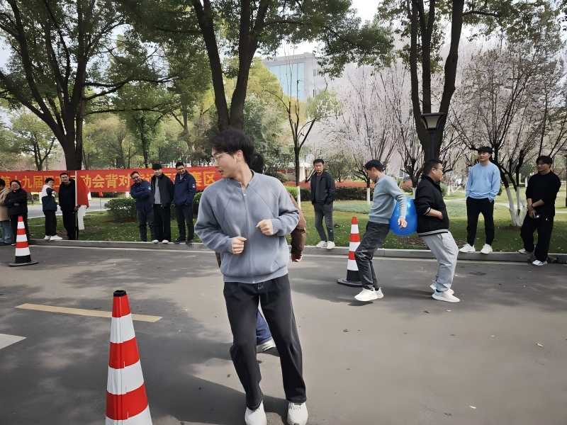 “旱地龙舟”赛区,呐喊激昂,队员们俯身协力,龙舟如离弦之箭,在陆地上上演“速度与激情”,团队协作的力量尽显;“个人全能”赛场则充满欢声笑语,踢毽、跳跃、手脚并用、投壶等项目轮番上阵,考验着职工们的综合运动素养与灵活性;三人篮球的激烈对抗、多人跳绳的节奏考验、背对背运气球的默契配合,无不彰显着团队的力量与智慧。运球突破、长绳翻飞、气球传递,每一个动作都凝聚着汗水与默契,每一次成功都引来阵阵喝彩。