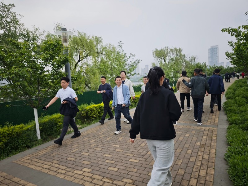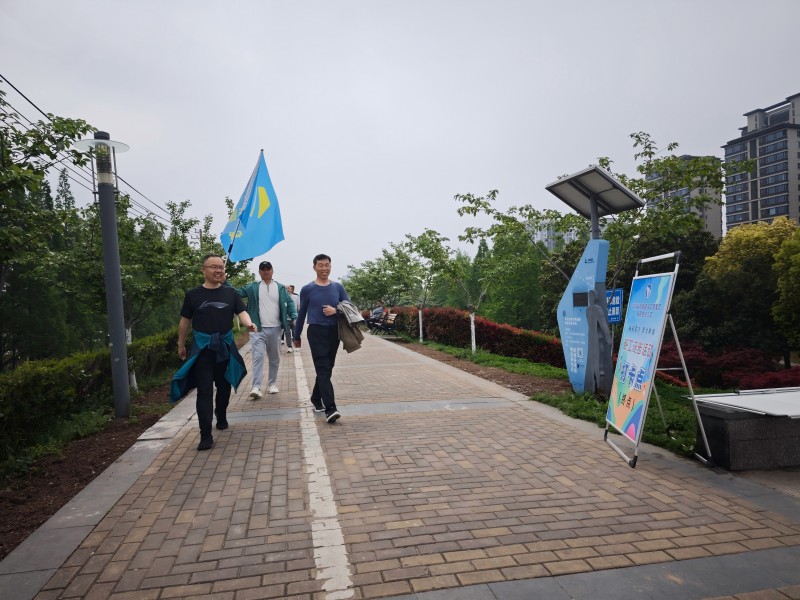 活动于8:30开始,路线自明珠广场沿泉河景观带至三里湾拦河坝后折返。沿途风光宜人,活动设置两处补给打卡点,提供饮水、食品及应急保障,确保安全有序。行进中,大家精神饱满,相互鼓励,展现了团结奋进、昂扬向上的精神风貌。