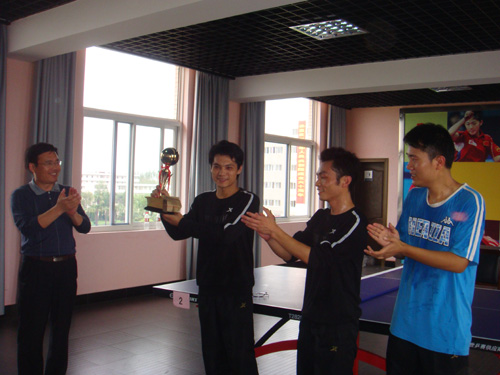 乒乓球场,比赛激烈而扣人心弦,不时传来叫好声。崔勇、王玉斌、马瑜剑三名队员不畏强手,奋力搏杀,经过几轮较量,取得了第二名的好成绩!