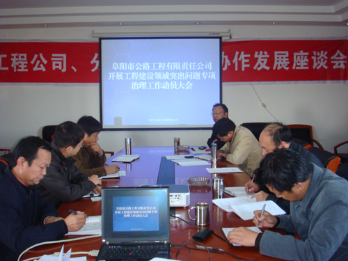 按照市公路局《关于开展工程建设领域突出问题专项治理工作实施方案》部署要求,阜阳市公路工程有限责任公司立即召开了动员大会,成立了由党总支书记、总经理唐谦同志担任组长的活动领导小组,并结合本公司项目建设与管理实际,制定了《工作方案》和《工作任务分工安排表》。