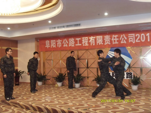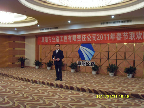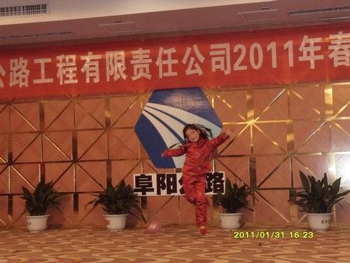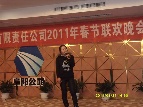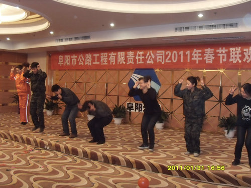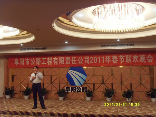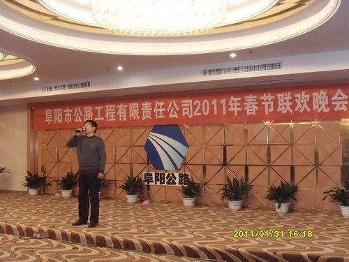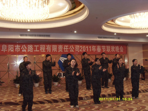 虎振雄风留浩气,兔迎盛世启新程。2011年1月31日,阜阳市公路工程有限责任公司迎新春联欢晚会在一片欢声笑语的海洋中拉开序幕。公司领导与员工欢聚一堂,共迎新春的到来。每个人脸上都挂满笑容,到处都洋溢着喜庆的气氛,一声声祝福和问候将现场气氛烘托得喜气洋洋。