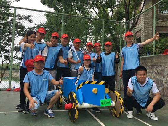 第二天,教练组带领我们团队感受了“速度与激情的碰撞”,活动中,通过固定的材料、工具按照图纸设计并制作赛车进行赛车活动。各团队通过热烈讨论、科学分工,积极动手在有限的时间里完成赛车制作,并努力确保赛车性能的优越性。从赛车设计、制作到比赛完成,我们的每一个团队都积极发挥着自己的聪明才智,创造出了别具风格的各式赛车,并在比赛中挥洒着青春和汗水。无论比赛的成败得失,他们都充满了自信和激情,有了他们,我们集团也就充满了希望和朝气。