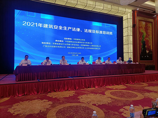2021年9月24-26日,由中国建筑业协会主办,中国建筑业协会建筑安全与机械分会承办,安徽省建设行业质量与安全协会、中国建筑第八工程局有限公司、广联达科技股份有限公司、湖南汉坤实业有限公司、大汉科技股份有限公司协办的“2021 年建筑安全生产法律、法规及标准培训班”在合肥召开。来自全国各地的大型建筑施工企业的主要负责人、安全管理负责人及专职安全管理人员等500多位同仁到场,伟德国际1946源于英国集团副总经理李超、安全部部长苗玉磊参加了本次培训。