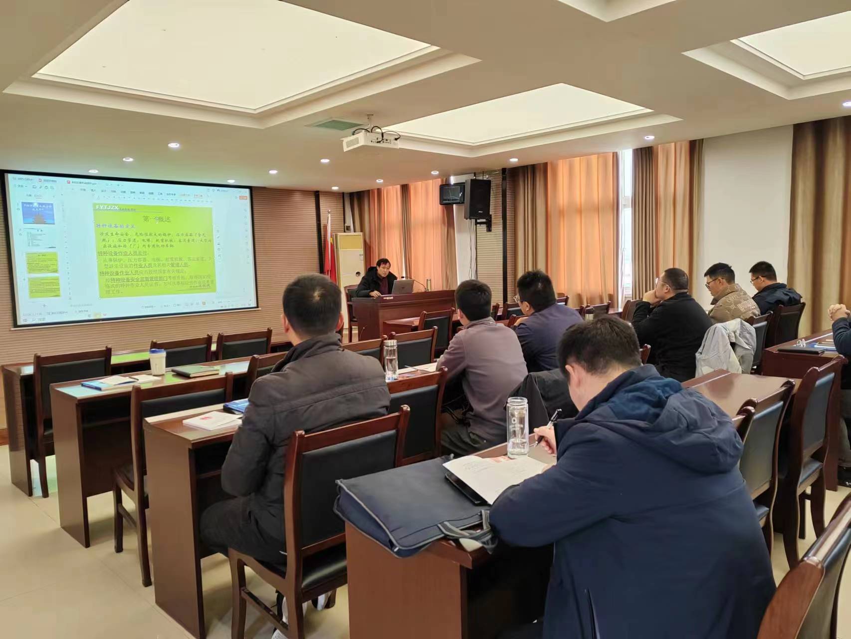 此次培训邀请了阜阳市特种设备监督检验中心张老师到场指导,集团公司企业负责人和安全管理人员参加培训。会上张老师就特种设备和安全生产作业展开讲解,以多起特种设备事故为例对起重机械作业中的风险进行详细讲解,从“人,机,制度”三要素指导公司做好特种设备安全管理。