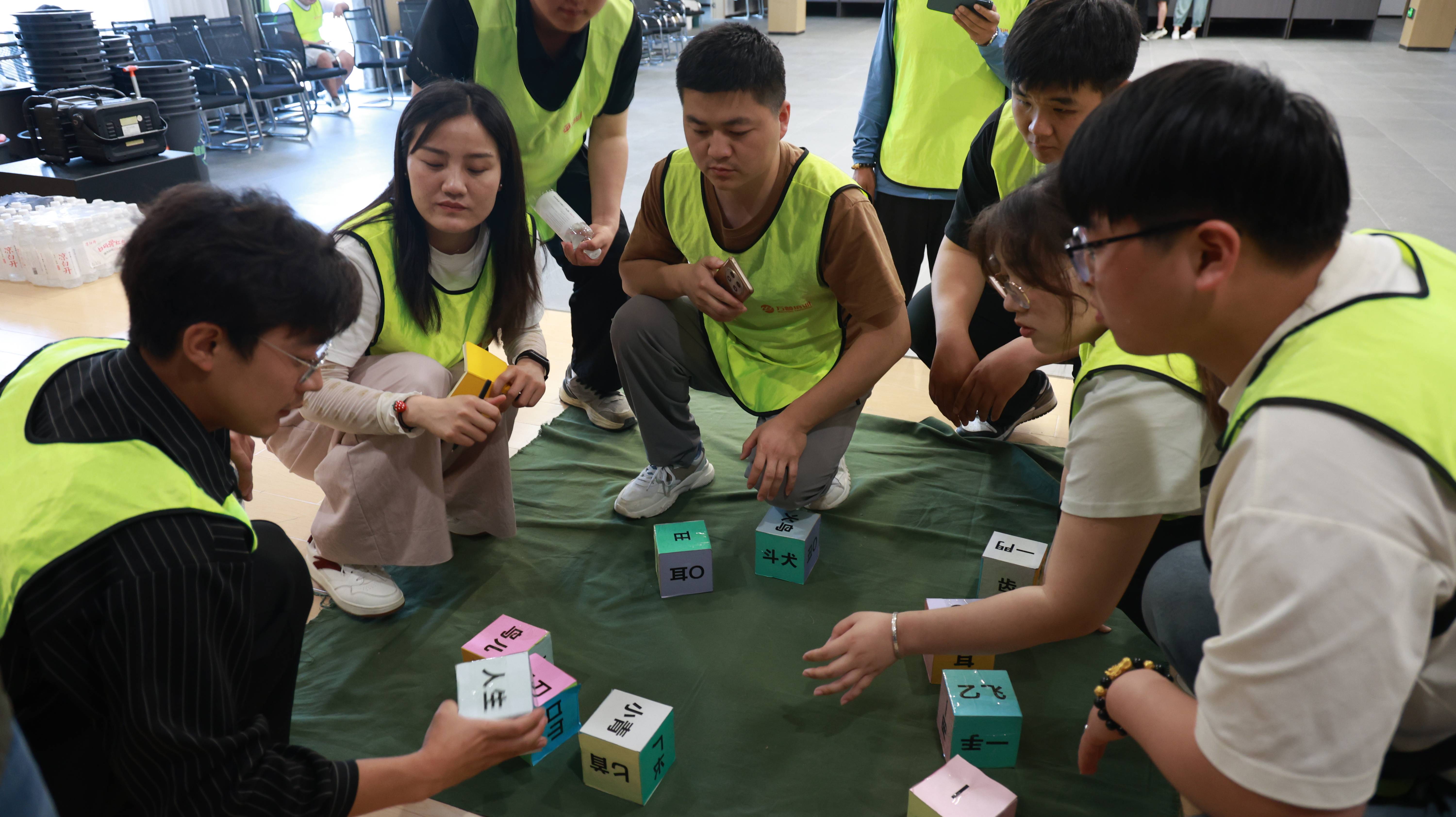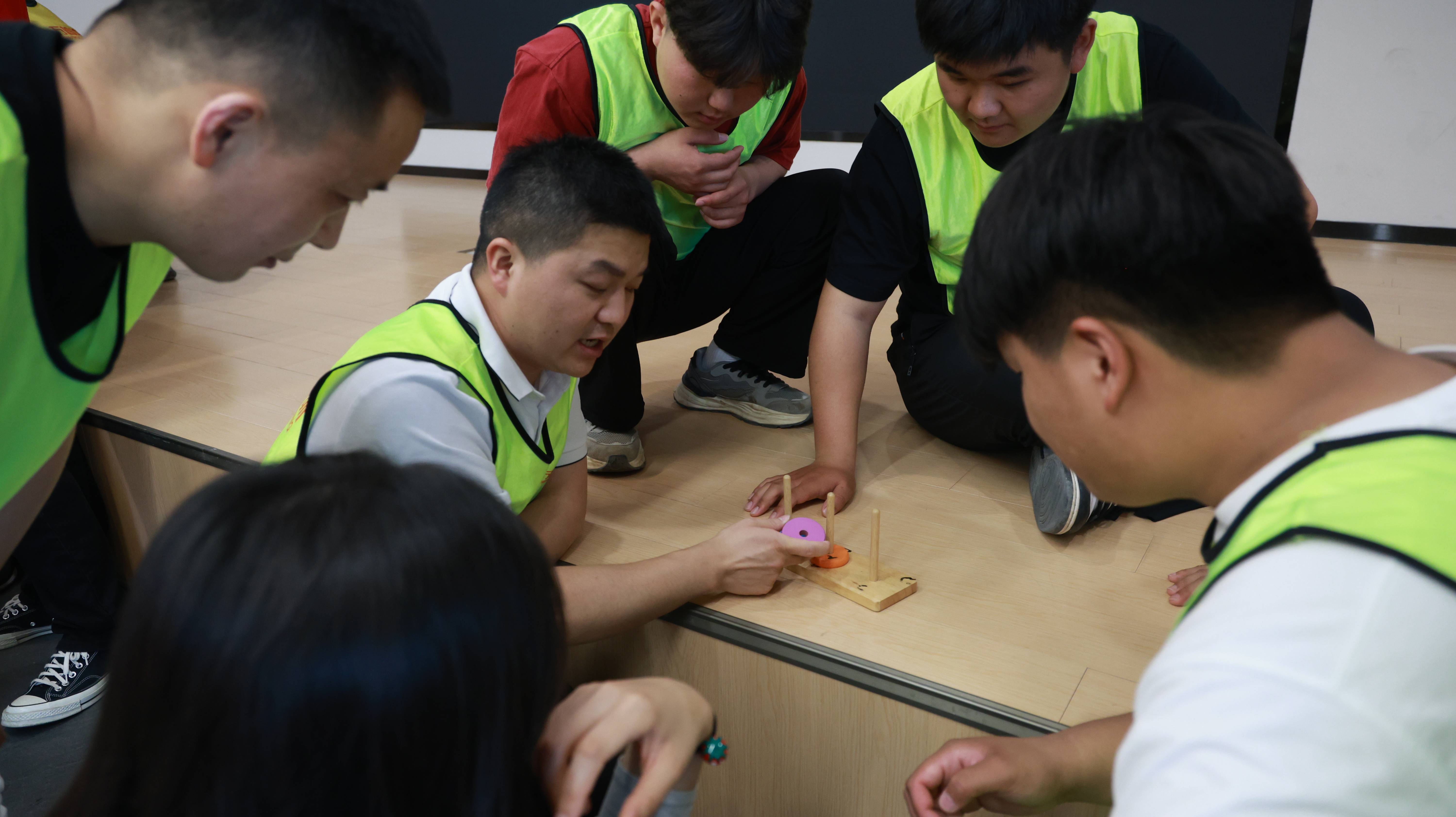 第一组正在进行合力建塔活动,搭建即将完成