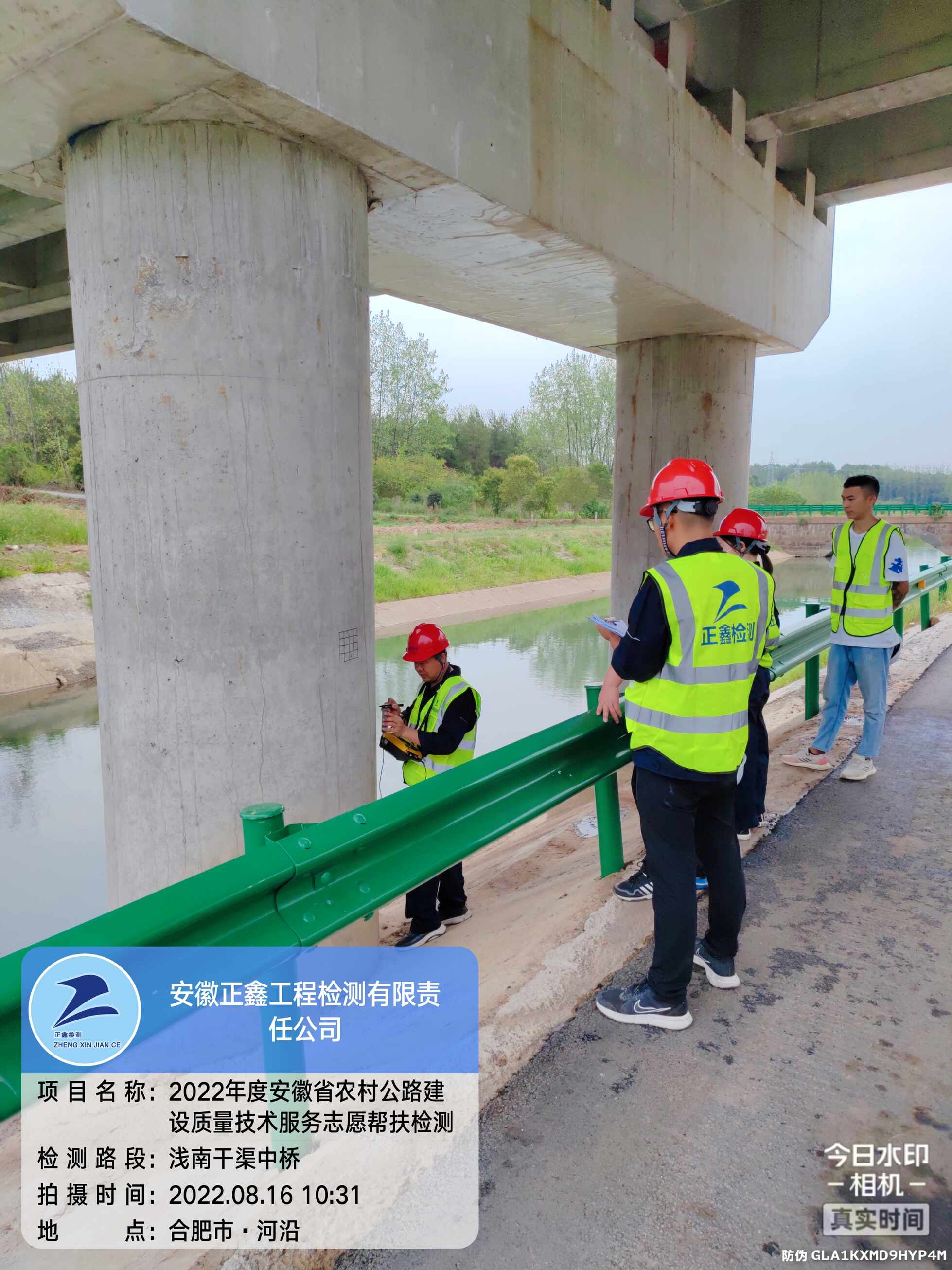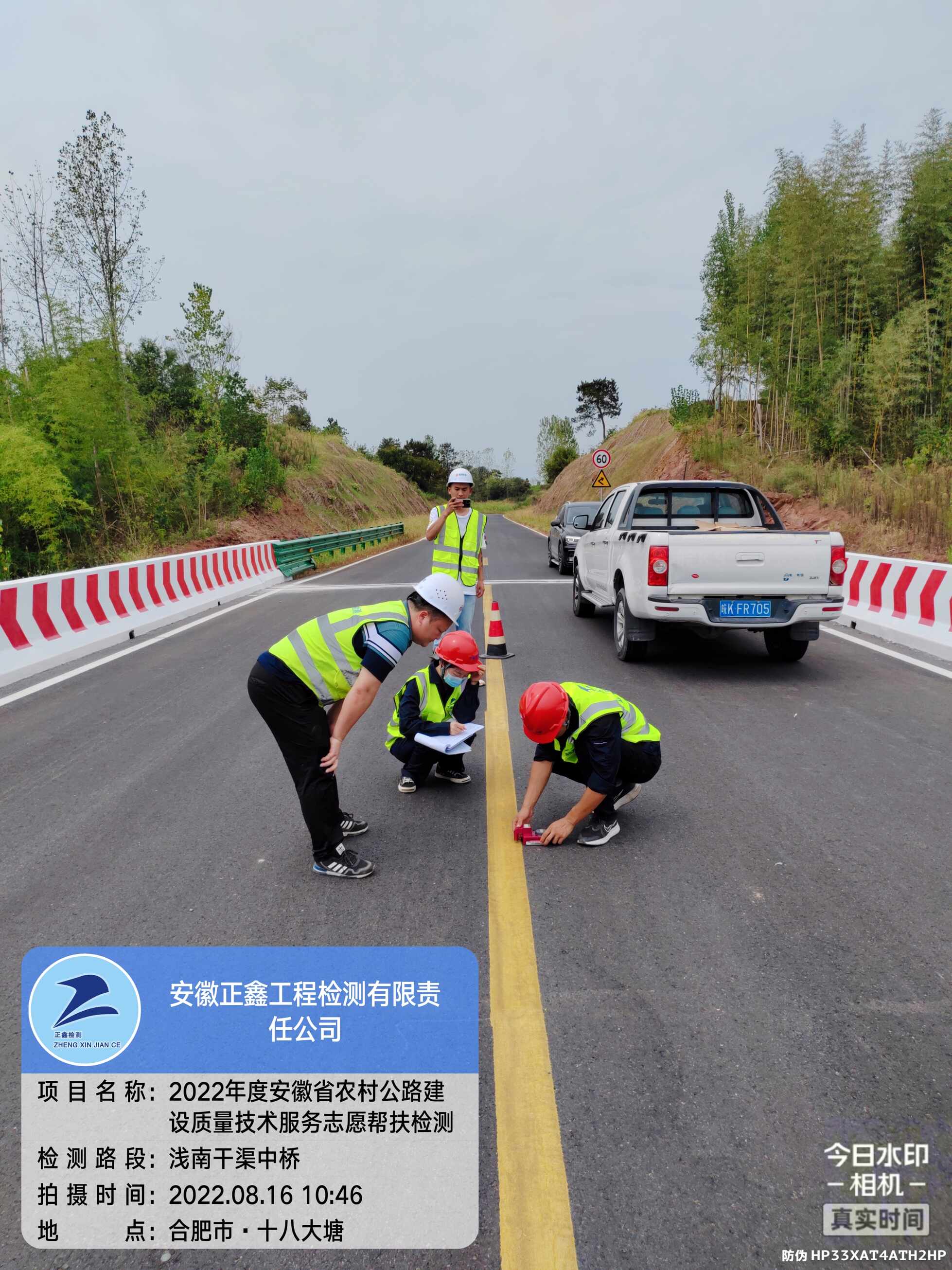 炎炎日正午,灼灼火俱燃。我公司帮扶小组在公司经理助理张曼 的带领下于 8 月 16 日至 17 日开展肥西县农村公路项目2 个标段、庐 江县 4 个乡镇约20.1km农村公路建设项目现场检测。此次检测工作包括路面结 构取芯,桥梁结构物强度、钢筋保护层厚度,交通安全设施标线、标 志和波形梁护栏检测等。在完成检测任务的同时我公司又组织了资深技术专家深入施工现场,对项目参建单位技术人员进行实操培训和理论知识宣贯等现场技术服务,帮助农村公路建设管理人员提升农村公路质量监管能力和水平,助力建设“四好农村路”。此次帮扶工作得到合肥市交通运输局的高度认可。