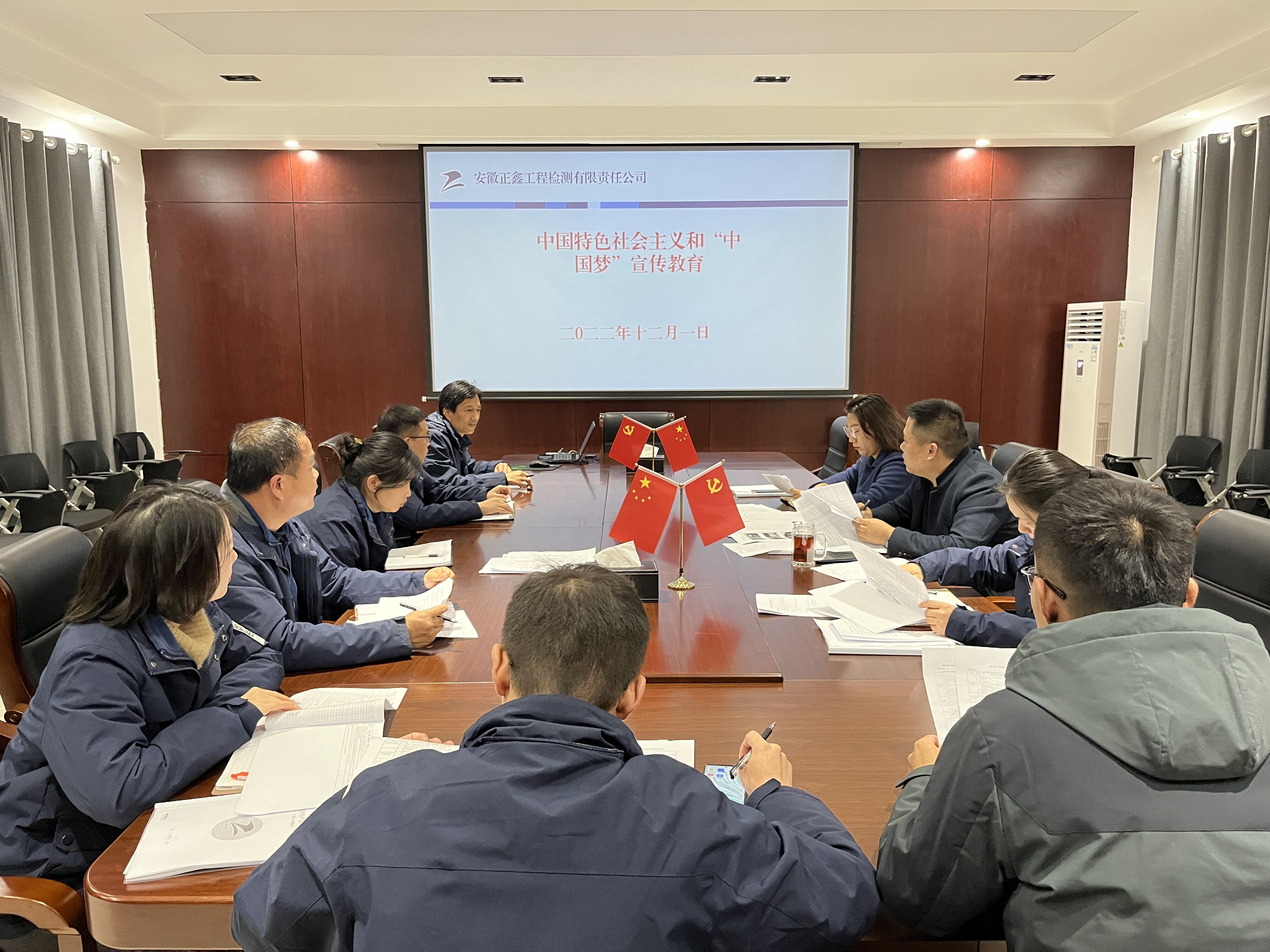为进一步弘扬爱国主义精神,激发全体职工学习中国特色社会主义道路理论体系的自觉性,增强集体凝聚力,为全面建设社会主义现代化国家、实现中华民族伟大复兴的中国梦贡献力量。公司于12月1日组织开展了“中国特色社会主义和中国梦”主题宣传教育活动。