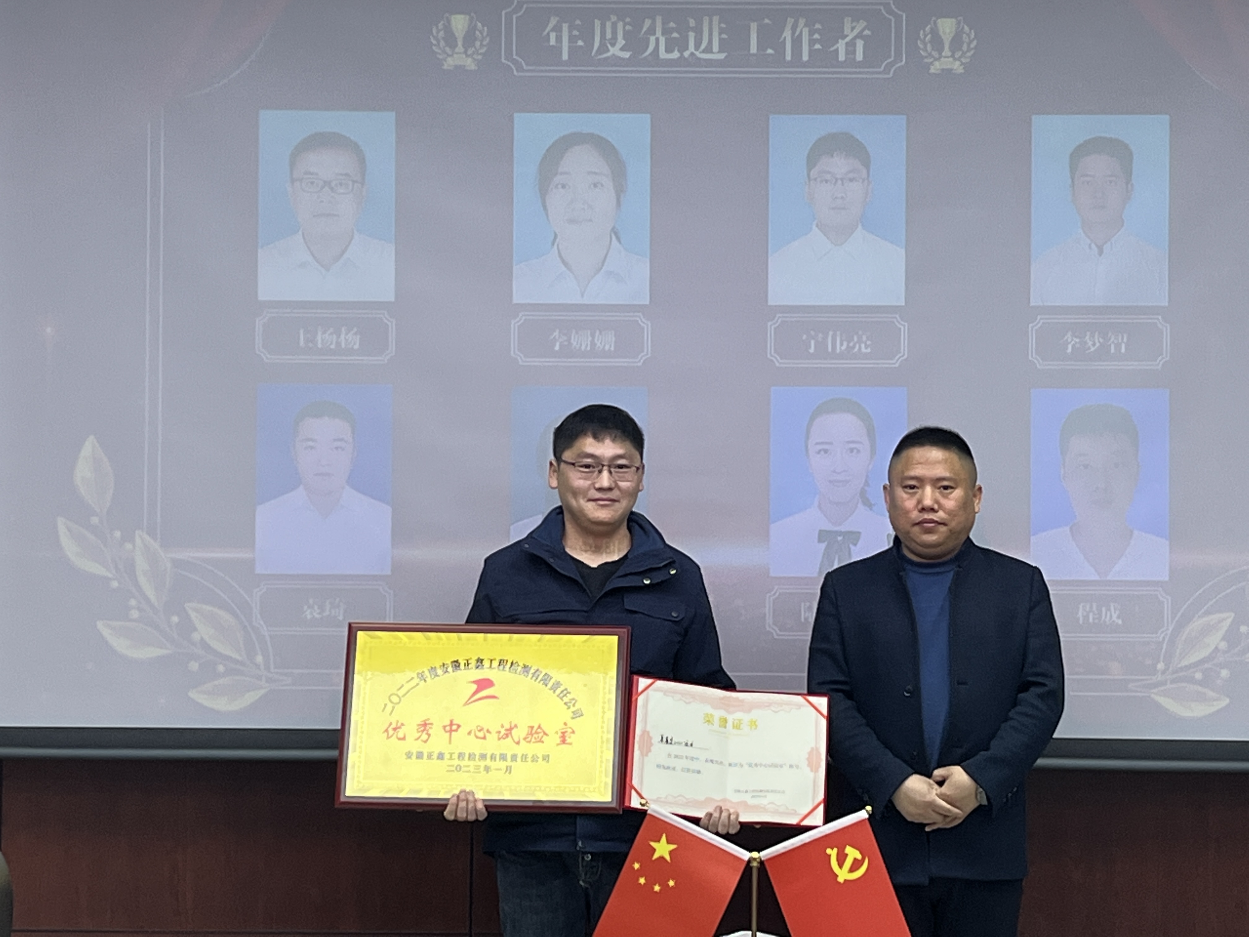 公司经理王思伟为优秀中心试验室颁发奖牌