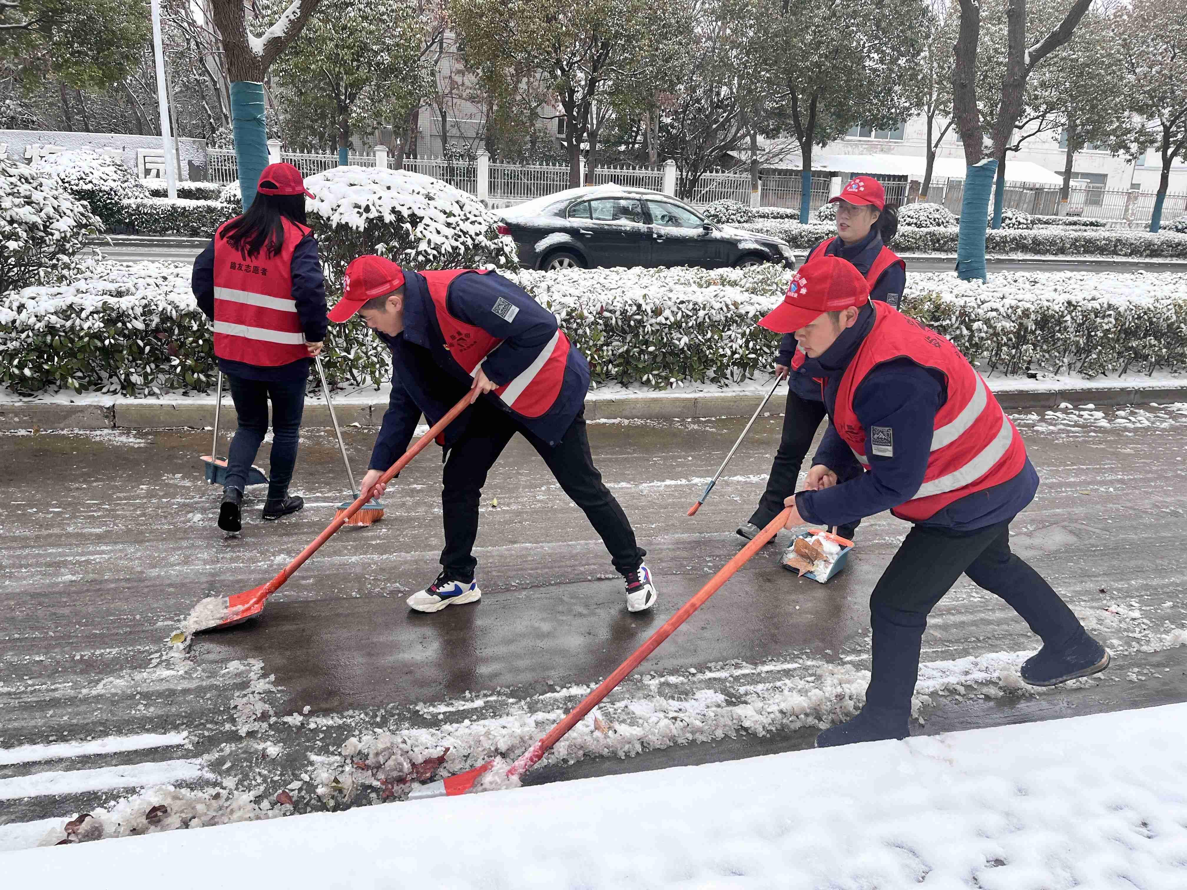 虽然气温较低、寒风阵阵,并没有阻挡大家扫雪除冰的热情,志愿者们手持扫帚、铁锹等工具,到附近的街边开始除雪。大家相互配合、齐心协力,你铲我扫,很快就清理出了一条干净整洁、畅通无阻的道路。为居民群众的出行安全提供了有力保障。