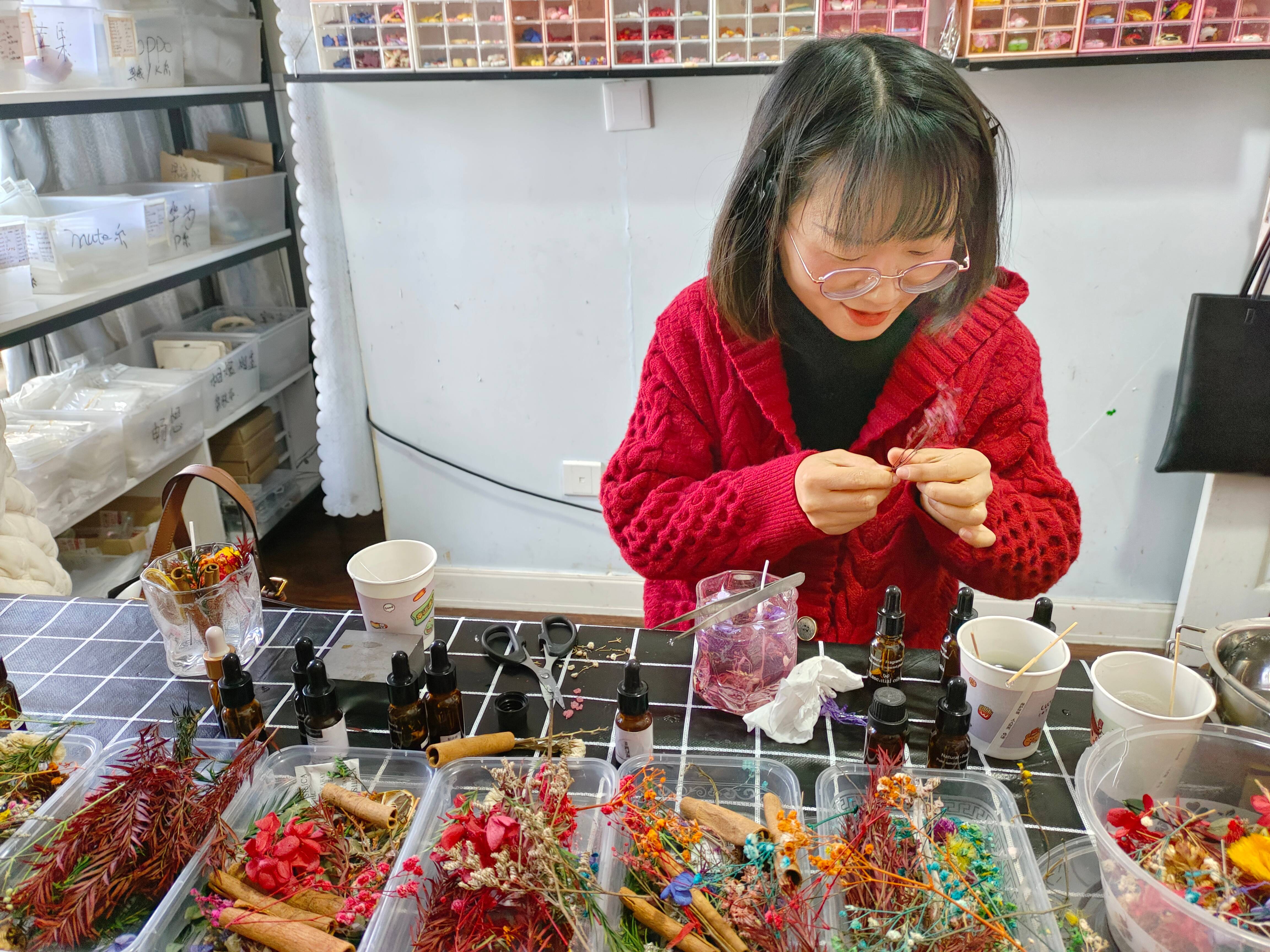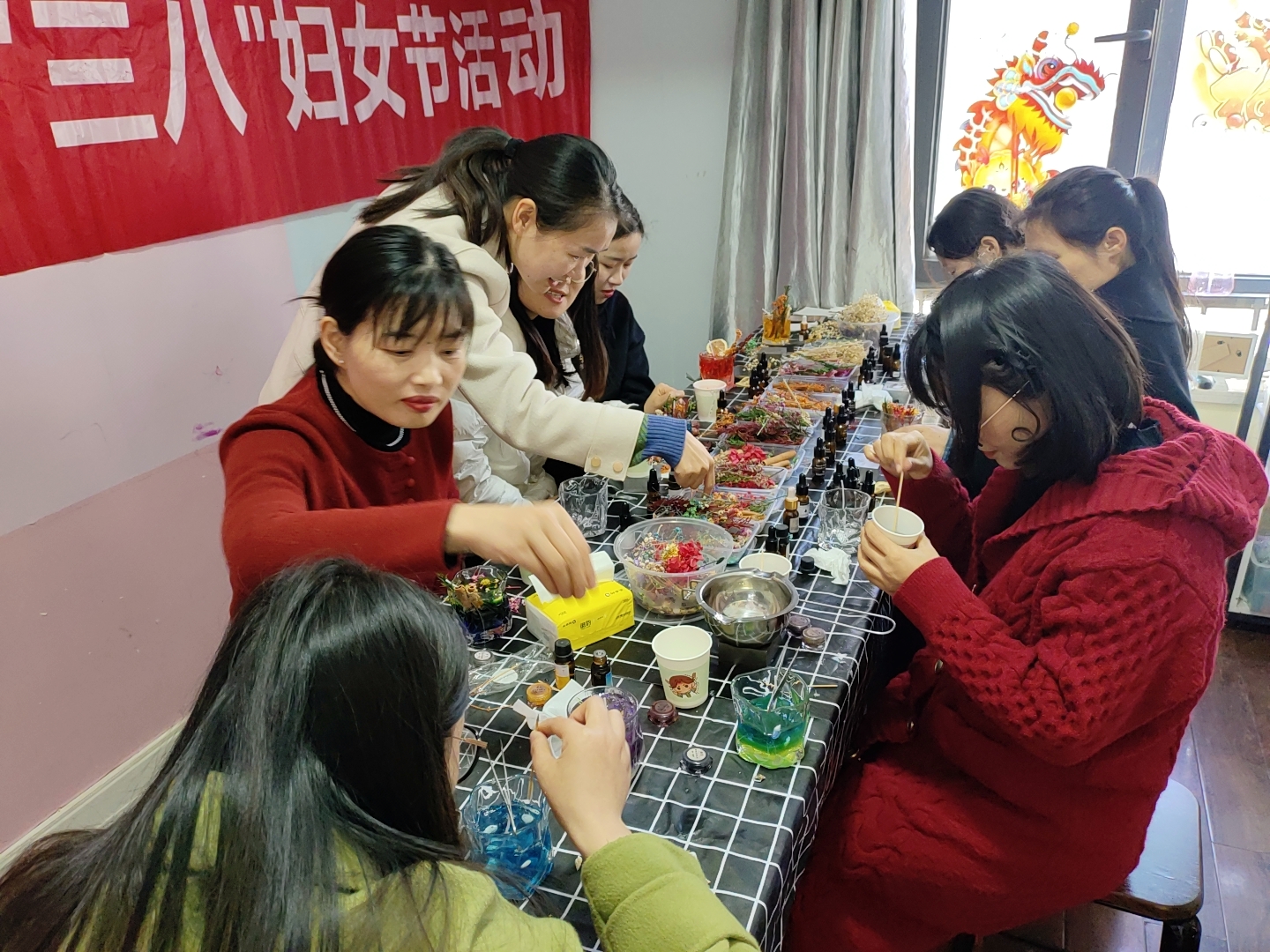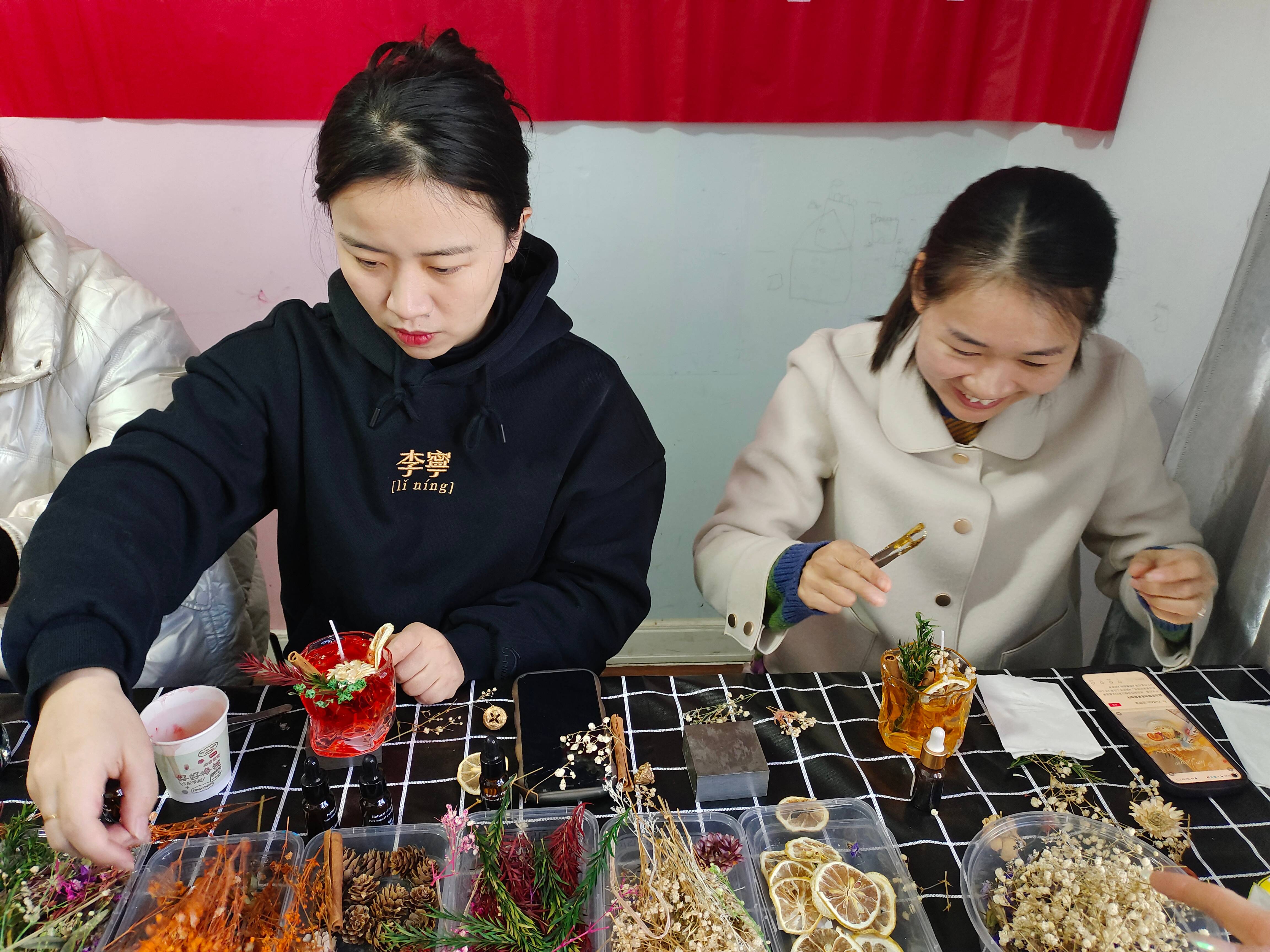 在香薰老师的指导下,女神们开始动手制作。