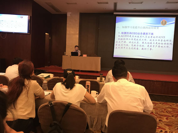 本次培训由安徽省质监局认证与实验室评审管理处处长叶炎、主任李金桥和产检院总工黄利君主讲,主要讲授了检验检测机构CEO需要强化学习,提升素质;强化检验检测机构资质认定管理;如何提升管理有效性及工作方法、强抓质量管理体系。生动有效的讲解,气氛活跃的课堂,取得了良好的培训效果。