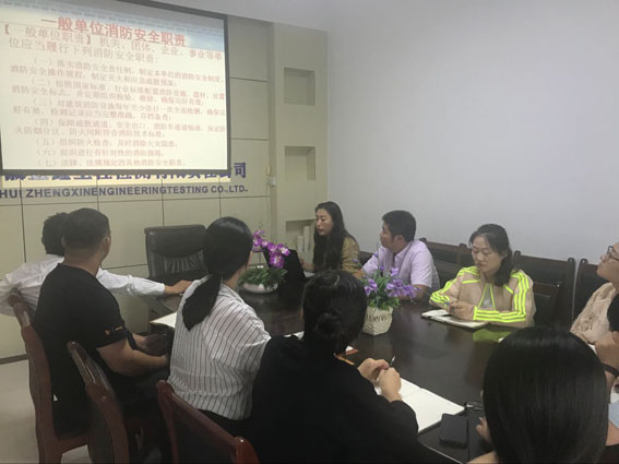 为切实加强公司消防安全管理,普及消防安全知识,进一步提升广大员工的消防安全意识,2018年9月13日,正鑫检测公司组织人员在公司内部和中心试验室分别开展了企业消防安全培训活动。