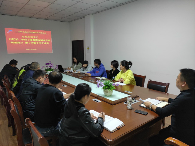 10月15日下午,正鑫检测公司组织开展“习近平总书记:年轻干部要提高解决实际问题能力 想干事能干事干成事”专题学习,公司全体人员参加了此次学习。